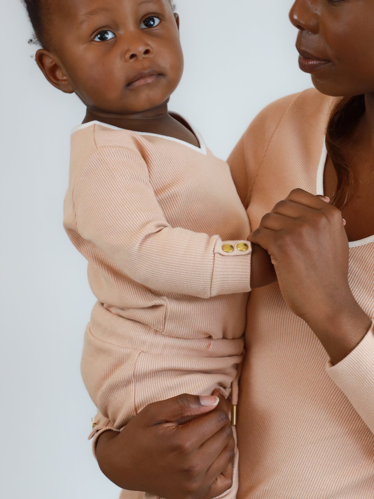 Der perfekt passende Body für Mama und Baby! Entworfen in Deutschland, hergestellt in Portugal. Der Body besteht aus hochwertigem, geripptem Stoff mit 98 % Bio-Baumwolle und 2 % Elasthan für eine tolle Passform und Komfort. Das Beige hat einen warmen, rosigen Unterton, der Kragen ist weiß und passt perfekt zu den Grizzly-Leggings oder der Koala-Jogginghose in Weiß.